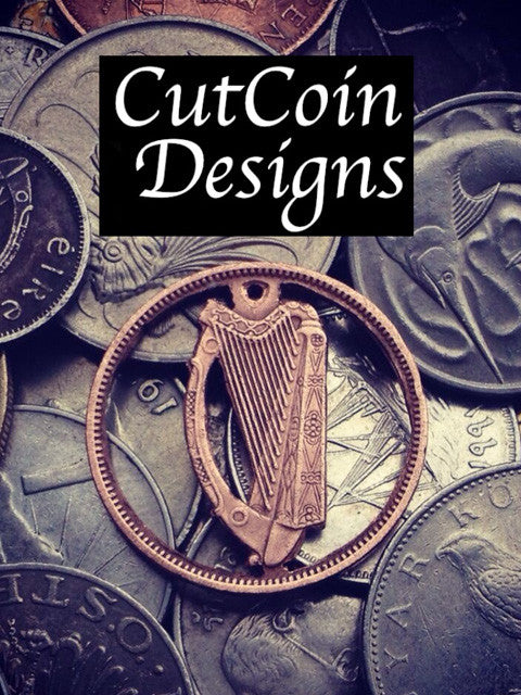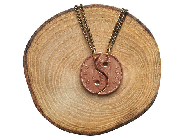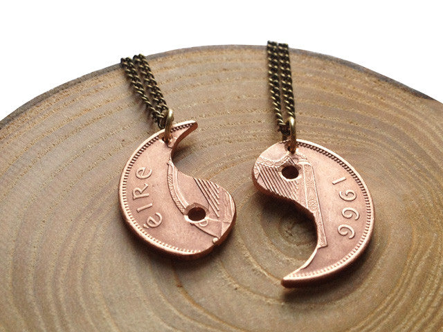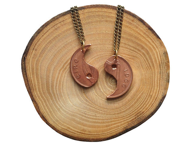 Handmade cut coin "Yin Yang" necklaces made from an actual half Irish penny coin.
